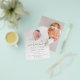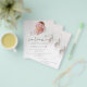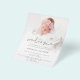 Um alternativo PAPER (não cartão) com preço de valor de excelente com tamanho PEQUENO de 4,5" x 5,6" sem envelopes - envelopes padrão A6 são o tamanho mais próximo ao ajustado. Anúncio de aniversário de boas-vindas do script preto de sobreposição de fotos minimalista. Simples estilo informal mínimo com este design neutro para o seu anúncio de nascimento e obrigado você. Com o script set na moda para Bem-vindo e personalize facilmente o resto do texto para seus próprios detalhes e substitua a imagem de amostra na frente e atrás pela de sua nova e bonita chegada.