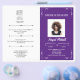 Para sempre em nossos corações roxo e branco, com fontes elegantes. Este programa funerário é uma maneira especial de se lembrar do seu amado. Edite facilmente todos os textos para acomodar os serviços e as memórias que você gostaria de compartilhar. Adicione uma foto do seu amado junto com seu nome e anos de vida. Por trás você pode escrever o obituário e o programa. Há muito espaço para descrever o seu serviço memorial. Envie-me uma mensagem, se precisar de ajuda para encontrar itens correspondentes. Dobre-o para um programa fúnebre elegante e prático!