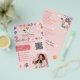Elevem o seu negócio de cuidados com animais de estimação com esta adorável e ilustrada babá de estimação e panfleto de cão. Apresentando um charmoso design de animais de estimação lúdicos cercados por flores brancas em uma paleta de cores totalmente editável, este folheto é perfeito para chamar atenção e mostrar seus serviços. A frente destaca informações essenciais de contato, identificadores de mídias sociais e um código QR para fácil acesso ao seu portfólio online, enquanto a parte traseira lista serviços abrangentes, como caminhada de cão, sentar-se em gatos, alimentação de animais de estimação, administração de medicamentos e muito mais. A aparência fofa e profissional garante que sua marca se destaca, transmitindo confiança e calor aos clientes potenciais.