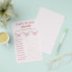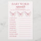 Adicione diversão ao seu chá de fraldas de borboleta rosa pastel com o nosso encantador jogo de palavras sem riscas! Apresentando uma design branca com belas borboletas em um fundo cor-de-rosa macio, este jogo engajador vai entreter seus convidados enquanto eles desembaralham palavras sobre bebês. Perfeito para adicionar um toque divertido à sua celebração, é fácil personalizar com seus detalhes. Este jogo não só é agradável, como também cria memórias duradouras para todos os que assistem ao chá!