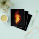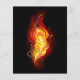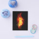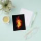 Pena de pavão brilhante feita de fogo e chamas sobre fundo negro.