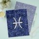 Um sinal de cromo como Peixes zodíaco num fundo marinho azul de design de camuflagem digital. Um design moderno urbano para uma ideia personalizada de presente de aniversário de excelente. Use o link "Perguntar a este Designer" para entrar em contato conosco com suas solicitações especiais de design ou para obter assistência com suas necessidades de personalização.