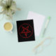 Pentagrama vermelho, invertido, texturizado em círculo, sobre fundo preto. Símbolo oculto. 666
