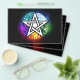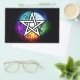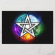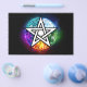 Pentagrama luminoso desenhado artificialmente com cinco elementos mágicos, água, terra, fogo, astral, ar sobre fundo negro. Pentagrama Wiccan. Wicca