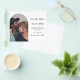 On front: Add your own vertical size photo inside the arch photo frame. A chic white background, black text. Templates for names and the date. The name and the text: Save the Date are written with a modern hand lettered style script with a heart.