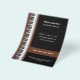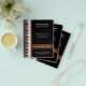A black flyer with an illustration of a piano and its black and white keys and a wooden surround. Perfect for activities such as piano lessons or teacher!