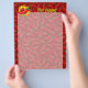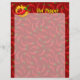 Pimenta malagueta vermelha com círculo de chamas em padrão contínuo. Texto personalizado em ambos os lados.