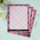 Pink, golden yellow and blue tartan design. Seamless pattern. Custom text and monogram.