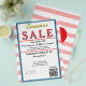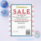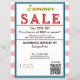 Pastel coral pink and white watercolor stripes. Summer Sale typography is bright yellow and red. Jewelry or any business . Ocean blue and white background to insert Sale price and date details. Upload Your Logo, or delete to leave area blank. Insert Name and Website or other contact QR Code. Thank You is written inside large red heart on backside. Original Design by TamiraZDesigns.