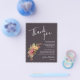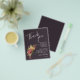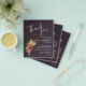 Folhetos de papel leves de 4,5" x 5,6" com orçamento de barato apresentam seus detalhes em letras brancas chic acentuadas com flores em um fundo castanho escuro. Estes lugares são perfeitos para colocar em cima dos pratos no seu janto de ensaio de casamento ou na sua recepção de casamento. CORRESPONDENTE a itens na nossa coleção.