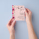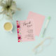 Os folhetos de papel leves de 4,5" x 5,6" com orçamento de barato apresentam seus detalhes em letras quentes acentuados com flores cor-de-rosa e natas quentes e verde em fundo cor-de-rosa. Estes lugares são perfeitos para colocar em cima dos pratos no seu janto de ensaio de casamento ou na sua recepção de casamento. CORRESPONDENTE a itens na nossa coleção.