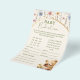 Faça a festa agitada com esta Placa de Previsão do Urso de Teddy Fala! Perfeito para um jogo de chá de fraldas, ele apresenta um ursinho fofinho e flores florescentes em um estilo alegre e vintage. Deixem seus convidados adivinhar os detalhes do bebê — este cartão trará risos e alegria para sua celebração enquanto todos se juntam à diversão!