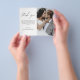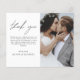 Casamento de Orçamento Obrigado Cartões que têm uma foto na frente e atrás. Os cartões de agradecimento contêm uma tipografia cursiva moderna, escrita com letra de mão, que é elegante, simples e moderna para usar após a celebração do dia do casamento.
