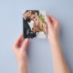 Obrigado Cartões que têm uma foto na frente e atrás. Os cartões de agradecimento contêm uma moderna tipografia cursiva escrita branca e com letras negras, que é elegante, simples e moderna de usar depois de você comemorar um simples dia de casamento minimalista.