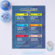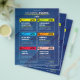 Organize seus próximos eventos com este folheto do planejador de agendamento limpo e moderno com caixas divisoras coloridas e fundo azul de abstrato. Personalize o folheto ao seu gosto e adicione um backside, se desejar!