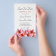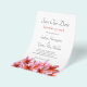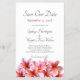 Salve a data, anúncio de casamento orçamentário com flores de plumeria rosa design. Perfeito para anunciar um casamento que acontecerá num local tropical. Este design com modelos de texto é impresso em papel folheto de barato. A ordem mínima é de 25 folhas. Montado é a orientação vertical com um aglomerado de flor havaiana rosa bonito ao longo do fundo. Cada floração realista é rosa claro a rosa mais escuro com laranja no centro. O texto é uma cinza escura na letra da caligrafia juntamente com a letra impressa em maiúsculas. Só a data é cor-de-rosa. O papel vem em três tamanhos e dois tipos, ou transfira esse design para um tipo mais caro.