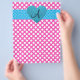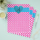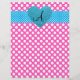 Fundo de bolinhas rosa e branco com coração de brilho azul falso e faixa de bolinhas azuis e brancas e monograma com letra alterada para qualquer letra a,b,c,d,e,f,g,h,i,j,k,l,m,n,o,p,q,r,s,t,u,v,w,x,y,z
