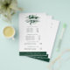 O design de cartão de folheto botânico chic exibe seus serviços, sua lista de preços ou informações comerciais de forma elegante. Design apresenta um logotipo de folhagem aquosa em caçador e verde-floresta, enquadrando seu nome e/ou nome comercial em um fundo branco nítido com trim verde escuro. Inclui quatro títulos personalizáveis e campos de texto do corpo, e espaço para as informações de contato da sua empresa na parte inferior. Para ajustar o layout, digite seu texto e use a função Personalizar para alterar o posicionamento e os tamanhos de fonte.