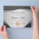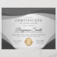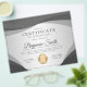 O certificado profissional de apreciação do folheto de prêmio apresenta formas escuras de onda de cinza, fundo de cinza leve e uma medalha de ouro brilhante.