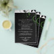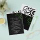Conjunto de convite de casamento preto e branco moderno e elegante com sotaques brancos e verdes floresta, Adicione um toque especial com o delicado fundo de folha de pergaminho em redemoinho. Personalize online com os detalhes do seu casamento.