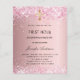 Por favor, note que este convite está no papel de folheto e é muito fino. Os envelopes não estão incluídos. Para convites mais espessos (mesmo design) visite nossa loja. Um plano de fundo de gradiente cor-de-rosa. Decorado com brilho sujo rosa, confete e uma cruz. Personalize e adicione um nome e detalhes. O nome é escrito com um script de estilo manuscrito
