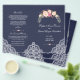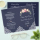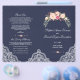 Desenho elegante e romântico com belos buquês florais em aquarela, cantos em renda, um divisor floral, tudo em fundo azul-meia-noite (pode ser alterado); no verso, o mesmo fundo e divisor floral com suas iniciais. Use Personalizar este modelo para adicionar suas informações. Para itens correspondentes, visite minha Coleção de Buquês Florais Rosa Bege.