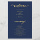 Cerimônia moderna e minimalista de moda em ouro falso, e programa de núpcias azul-marinho do barato do ORÇAMENTO negro, PAPER FLYER modelo, com caligrafia de moda cônica. +++++++++++ Fácil de personalizar com o seu texto personalizado em ambos os lados! ++++++++++++++++++ LEIA ISSO ANTES DE COMPRAR! Este é um programa de barato de baixo orçamento impresso em um FLYER (tipo de anúncio). +++ Observe que O PAPEL ORÇAMENTAL É FINO - Você pode fazer upgrade para que este cartão seja impresso no estoque de cartão +++ ENVELOPES NÃO INCLUÍDO.