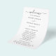 Folheto simples do programa de casamento orçamentário com um design limpo e minimalista que apresenta um toque elegante com a palavra "bem-vindo" em roteiro com supressões. Um design preto e branco moderno que se coordena lindamente com qualquer estilo de casamento. Estes programas de casamento baratos são impressos em folhas de papel para uma opção econômica.