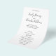 Folheto do programa de casamento de orçamento moderno com design simples e na moda com seus nomes em uma tipografia elegante em preto e branco. A frente tem sua ordem de cerimônia e a parte de trás tem sua festa de casamento e obrigado. Estes Programas de Casamento ao estilo minimalista são excelente de um casamento casual no quintal e são impressos em folhas de papel para uma opção econômica.