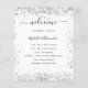 Por favor, note que este programa está no papel folheto e muito fino. Para um programa mais espesso (mesmo design) visite nossa loja. Na frente: Um programa de casamento moderno e elegante, linha do tempo. Um fundo branco decorado com falso brilho prateado, brilhos. Personalize e adicione seus nomes e detalhes do casamento. Letras pretas coloridas. Se você tiver mais texto, é possível reduzir o espaço na linha. Volta: fundo com aspecto sujo de prata e brilha.