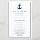 Folheto do programa de casamento orçamental náutico com uma âncora azul marinho com o seu monograma em ambos os lados, sobre um fundo branco. A frente tem seus eventos de cerimônia e a parte de trás tem sua festa de casamento. Um design simples, mas elegante, perfeito para uma celebração temática na praia no verão. Estes programas de casamento baratos são impressos em folhas de papel para uma opção econômica.