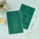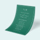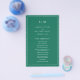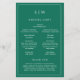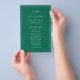 Simples tom de joia esmeraldo orçamento verde Folheto do Programa de Casamento apresentando um design moderno, mas elegante, com suas duas letras monogramas no topo e seus detalhes cercados por uma fina fronteira. As fontes e cores podem ser alteradas na ferramenta de edição de design. A frente tem sua ordem de cerimônia e a parte de trás tem sua festa de casamento e obrigado. Um design chic e na moda que é excelente para um casal minimalista. Estes programas de casamento baratos são impressos em folhas de papel para uma opção econômica.
