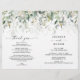 Todos adorarão ler os detalhes do seu casamento com este adorável programa de casamento dobrado! Edite facilmente a design para criar um programa de casamento único. Adicione uma foto ao fundo! **Por favor, observe que isto chegará ao plano e você precisará dobrar a metade para criar programas. Este elegante design apresenta um arranjo de aquarela macia de eucalipto, verde e embelezamentos de ouro. Clique no botão Personalizar e "Clique para personalizar mais" para editar a cor do texto do script. Veja a coleção inteira para mais itens correspondentes!