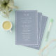 Folheto do Programa de Casamento com orçamento azul simples, com um design moderno, mas elegante, com seu monograma de duas letras no topo e seus detalhes cercados por uma fina borda. As fontes e cores podem ser alteradas na ferramenta de edição de design. A frente tem sua ordem de cerimônia e a parte de trás tem sua festa de casamento e obrigado. Um design chic e na moda que é excelente para um casal minimalista. Estes programas de casamento baratos são impressos em folhas de papel para uma opção econômica.