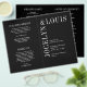 Programa moderno de casamento dobrado (impresso em papel de impressora fino e desdobrado) com um design preto minimalista com seus nomes em uma fonte grande ao longo do lado esquerdo e superior. Esta design é simples o suficiente para um casamento formal, mas faz uma declaração ousada.