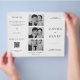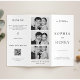 Crie um programa de casamento atemporal e elegante com este design tri-dobra preto e branco. Com um layout limpo, tipografia romântica e um código QR moderno para que os convidados compartilhem facilmente fotos, este modelo é perfeito para casamentos clássicos e contemporâneos. Personalize com seus nomes, detalhes da cerimônia e informações do casamento para criar uma bela lembrança para o seu dia especial.