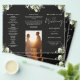 Este elegante programa de casamento trifold apresenta folhagens florais em um fundo preto. Projetado por Thisisnotme©