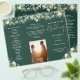 Este elegante programa de casamento trifólio apresenta folhagens florais e luzes de corda em um fundo verde esmeralda. Projetado por Thisisnotme©
