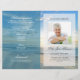 Modelo de programa de funeral temático de praia fácil de usar, com foto e texto editáveis.