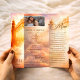 Crie uma homenagem linda e edificante com este Programa de Funeral dos Portões do Céu, apresentando céus serenos, luz suave e os simbólicos Portões do Céu. Este elegante folheto memorial de capa dupla oferece espaço para fotos queridas, obituário, ordem de serviço, poemas, orações e uma mensagem final de gratidão. Perfeito para funerais, celebrações de vida, serviços de partida para casa e eventos de recordação. Personalize facilmente todo o texto e imagens para homenagear seu ente querido de uma maneira significativa e pessoal.