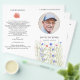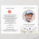 Com uma pradaria de flores silvestres colorida, esta aquarela adorna um programa de funeral dobrável. Projetado para ser impresso em ambos os lados e fornecido plano para você dobrar, a frente mostra o nome do falecido e você pode inserir uma fotografia favorita na moldura circular com efeito prateado, enquanto o interior pode ser editado com a ordem do serviço ou o que desejar. Em um momento difícil, este design gracioso com bordas prateadas é adequado para uma celebração do serviço de vida, um serviço memorial religioso na igreja ou uma cerimônia humanista. NB: O efeito de folha prateada FAUX é impresso e NÃO é metálico - dobre em casa.