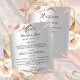 Um menu de casamento e cronograma da noite, programa. Um fundo falso prateado com veias de mármore rosa dourado. Personalize e adicione seus nomes, menu e o programa. Letras pretas.