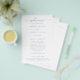 Folheto simples e empoeirado do programa de casamento, com um design limpo e minimalista, com um toque elegante com a palavra "bem-vindo" em roteiro com supressões. Um design moderno que se coordena lindamente com qualquer estilo de casamento. Estes programas de casamento baratos são impressos em folhas de papel para uma opção econômica.