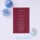 Um simples panfleto do Programa de Casamento, com um design moderno, mas elegante, com suas duas letras de monograma no topo e seus detalhes cercados por uma fina borda. As fontes e cores podem ser alteradas na ferramenta de edição de design. A frente tem sua ordem de cerimônia e a parte de trás tem sua festa de casamento e obrigado. Um design chic e na moda que é excelente para um casal minimalista. Estes programas de casamento baratos são impressos em folhas de papel para uma opção econômica.