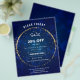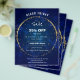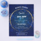 Panfleto de promoção de festa de férias com faíscas azuis.