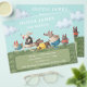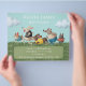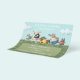 Um folheto de serviços de assistência a animais de estimação. Perfeito para um andador de cães, porteiro, babá ou creche de cão. A design consiste em uma ilustração de cinco cachorros engraçados correndo uma corrida por um campo com céu azul e nuvens. Personalize adicionando seus detalhes de contato.