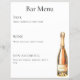 Com o texto: Abrir bar. Personalize e adicione o menu bar. Sage verde. Decorrido com uma garrafa de vinho espumante