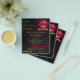 Espalhe as boas notícias com este elegante panfleto preto, dourado e vermelho com lábios brilhantes e vermelhos brilhantes que também podem ser usados como cupom.