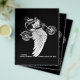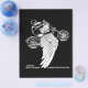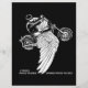 "4 rodas movem o corpo, 2 rodas movem a alma." Diz tudo. É por isso que andamos. Desenho de tinta B/W de um cavaleiro numa bicicleta com asas, com texto pequeno abaixo. T-shirts, camisolas, cartas, botões, presentes.