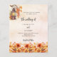 Por favor, note que este convite está no papel de folheto e é muito fino. Os envelopes não estão incluídos. Para convites mais espessos (mesmo design) visite nossa loja. Um fundo de gradiente rosa ouro. Decorado com uma safra lateral e flores laranja. Personalize e adicione seus nomes e detalhes.